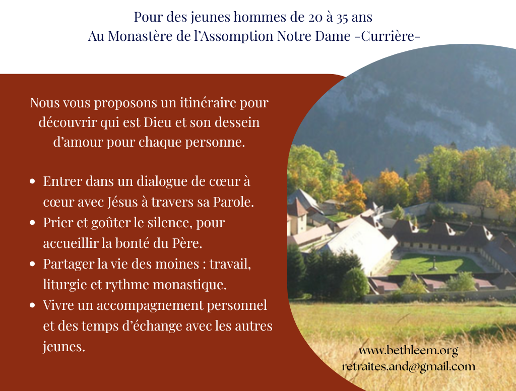Retraite de prière avec les Moines de Bethléem au Monastère de L’Assomption Notre Dame -Currière-